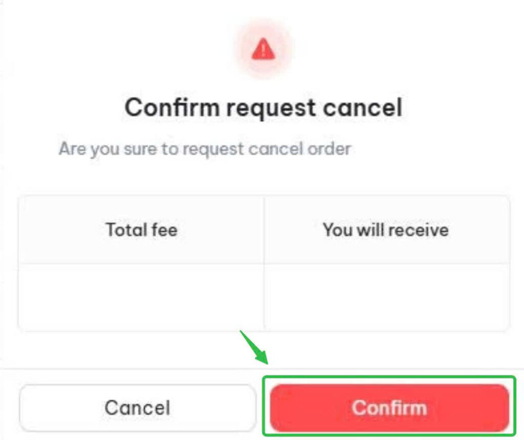 Step 2: Click ‘Confirm’ to confirm the order cancellation.